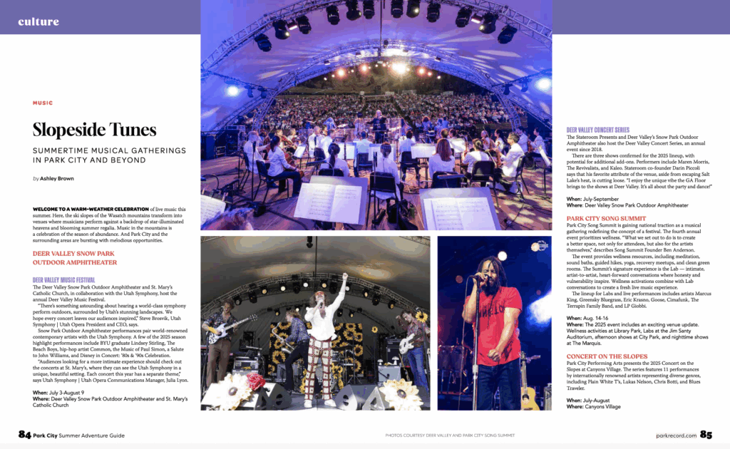 “Park City Performing Arts presents the 2025 Concert on the Slopes at Canyons Village. The series features 11 performances by internationally renowned artists representing diverse genres. “